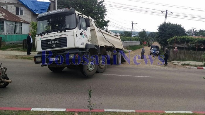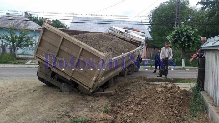 Un camion a rămas blocat, joi dimineață, pe o stradă centrală din orașul Darabani, din cauza unor lucrări de mântuială.