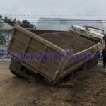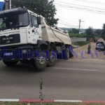 Camionul a rămas împotmolit în noroi la intersecția străzii 1 Decembrie cu strada Mihail Kogălniceanu, după ce pământul s-a surpat într-o zonă unde a fost construit un cămin de apă.