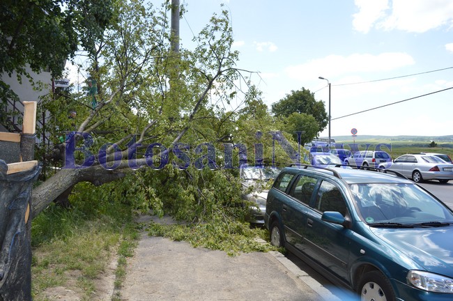 Un copac a căzut, luni la amiază, peste două maşini parcate pe strada Pacea în zona ACR.