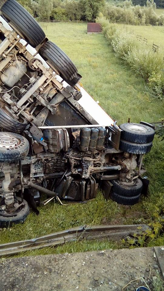 like-facebookPotrivit polițiștilor, un bărbat, de 52 ani, din municipiul Botoşani, în timp ce conducea ansamblul de autovehicule compus dintr-un autotractor și o remorcă, fără a fi încărcat, pe DN 17, din direcţia Suceava spre Vatra Dornei, pe raza localităţii Vama, într-o curbă periculoasă la stânga, semnalizată corespunzător şi în rampă, din cauza vitezei excesive, a derapat şi a lovit parapetul metalic de pe partea stângă a drumului, având în vedere direcţia sa de deplasare, după care s-a răsturnat în decor.