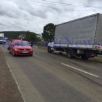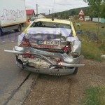 Un autoturism VW înscripţionat taxi a oprit în spatele primei maşini, însă o autoutilitară Iveco ce venea din spate nu a mai oprit şi a izbit primele două maşini.