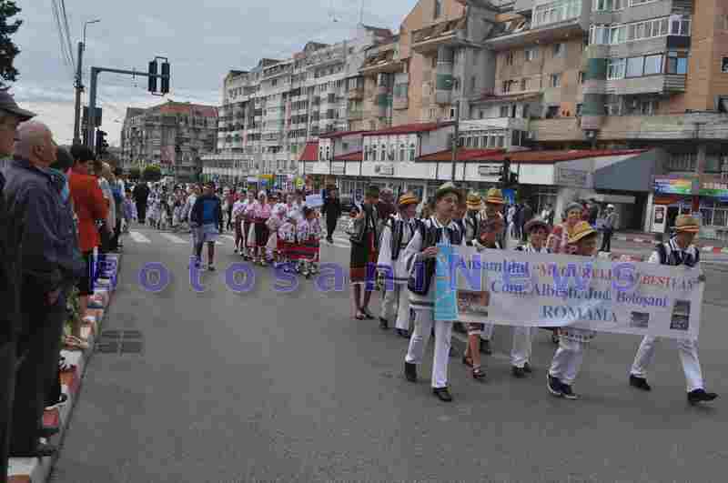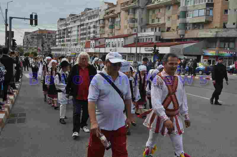 Oamenii au însoțit ansamblurile populare pe tot parcursul paradei prin Botoșani, desfășurată pe traseul Piața Revoluției- Cuza Vodă- Nicolae Iorga- Calea Națională- Direcția Muncii- Cuza Vodă- Piața Revoluției.