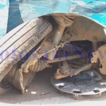 O şoferiţă aflată la volanul unui Renault Kangoo a pierdut controlul direcţiei după ce roata din dreapta faţă s-a rupt în mers.