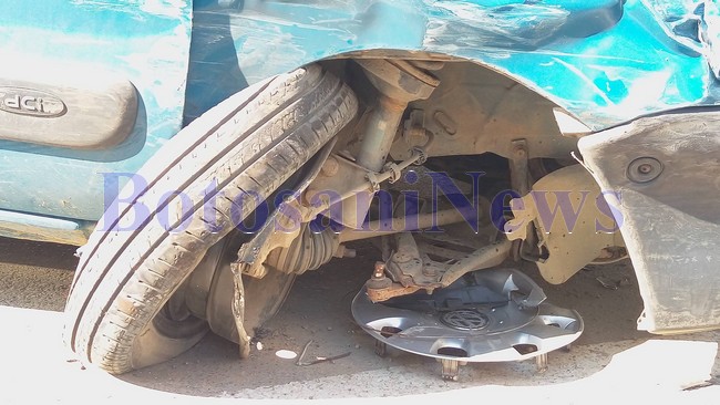 O şoferiţă aflată la volanul unui Renault Kangoo a pierdut controlul direcţiei după ce roata din dreapta faţă s-a rupt în mers.