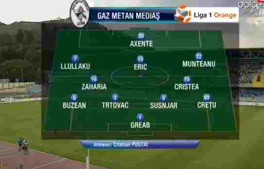 Gaz Metan Mediaş: Greab – Creţu, Susnjar, Trtovac, Buzean – Cristea, Zaharia – V. Munteanu, Eric, Llullaku – Axente
