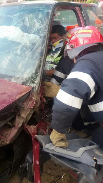 La fața locului au ajuns echipe de descarcerare de la Inspectoratul pentru Situații de Urgență. BMW-ul implicat în accident avea numere provizorii.