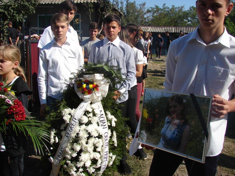Zeci de copii din satul din Avrămeni au dus coroanele, la înmormântarea Maricicăi, prima din cortegiu fiind coroana trimisă de premierul Dacian Cioloş şi depusă lângă sicriu de prefectul Dan Nechifor.