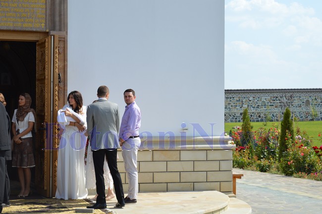 Botezul a avult loc la Mănăstirea Zosin, la eveniment luând parte printre alţi invitaţi şi şefa DSVSA, Minodora Vasiliu precum şi Bogdan Dăscălescu, directorul abatorului de păsări de la Răchiţi. Proaspăta mămică a stat în afara bisericii pe timpul slujbei religioase, conform tradiţiei, însă cei din interior au avut emoţii.