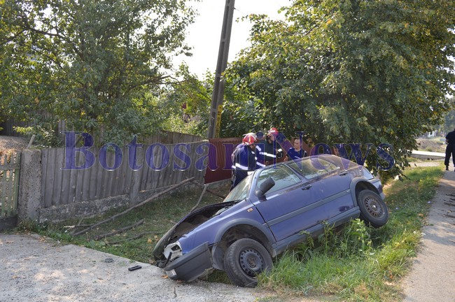 Evenimentul a avut loc în localitatea Vorona când Marius U., de 37 de ani, aflat la volanul unui VW Golf ce se îndrepta spre Botoşani a pierdut controlul volanului şi s-a izbit într-un cap de pod.