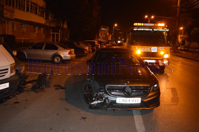 FOTO Accident cu daune de mii de euro. Un bolid de lux a intrat în două maşini parcate