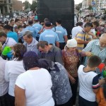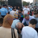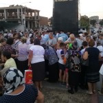 Oameni de toate vârstele au așteptat până la finalul slujbei, apoi au luat aghiasmă. Jandarmii au stat în mijlocul credincioșilor pentru a asigura ordinea la eveniment.