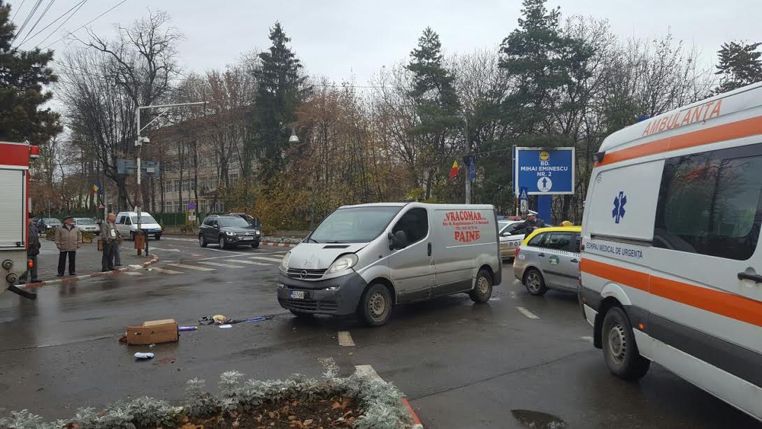 Un bărbat a fost rănit în urma unui accident rutier produs duminică dimineaţă în sensul giratoriu dintre Bulevardul Mihai Eminescu şi strada Marchian.