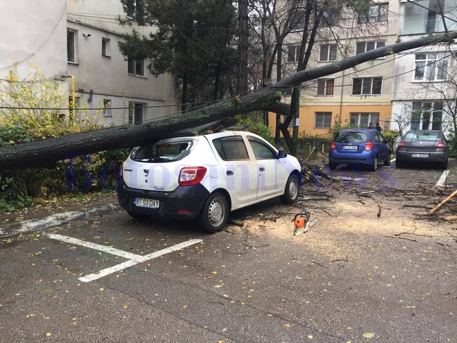 Maşinile erau parcate pe strada Octav Onicescu, iar copacul a afectat cel mai mult un autoturism Dacia Sandero, dar şi un Opel şi un Renault . Pompierii au fost solicitaţi la faţa locului şi au îndepărtat trunchiul arborelui de pe maşini.