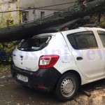 Trei maşini au fost avariate, duminică dimineaţă, după ce un copac s-a prăbuşit peste ele.