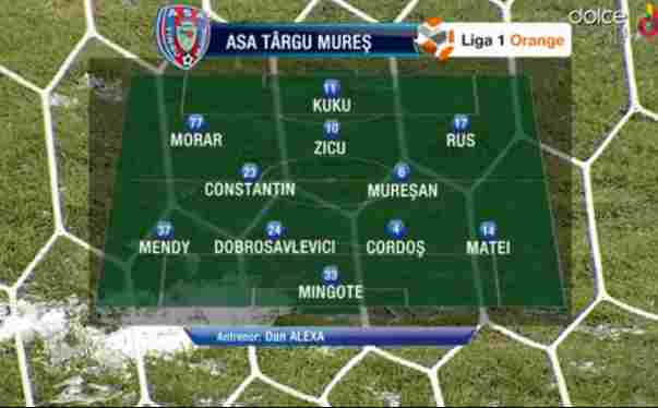 ASA Târgu Mureș: Mingote – Matei, Cordos, Dobrosavlevici, Mendy – G. Mureșan, M. Constantn, – Ciprian Rus, Zicu, Morar – Kuku. Antr. Dan Alexa