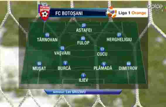 FC Botoșani: Iliev- Dimitrov, Plamadă, Burcă, Mușat- Vașvari, Cucu- Târnovan, L. Fulop, Herghelegiu- Astafei. Antr. Leo Grozavu.