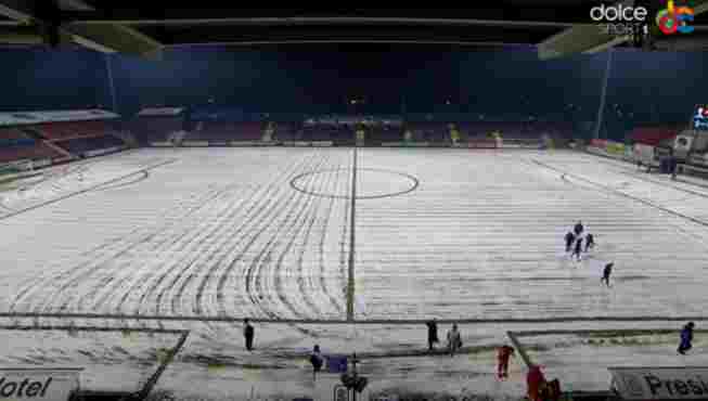 Partida de la Târgu Mureș s-a jucat pe un teren înghețat și acoperit cu zăpadă.