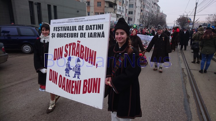 O impresionantă paradă de datini şi obiceiuri a avut loc, duminică dimineaţă, pe străzile din Botoşani. Sute de persoane s-au adunat să urmărească formaţiile de capre, căiuţi, urşi, colindători şi urători prezente la a 42 ediţie a Festivalului de datini şi obiceiuri de iarnă "Din străbuni, din oameni buni!".