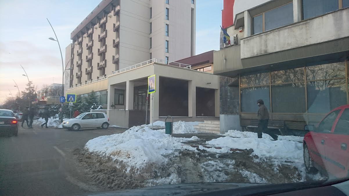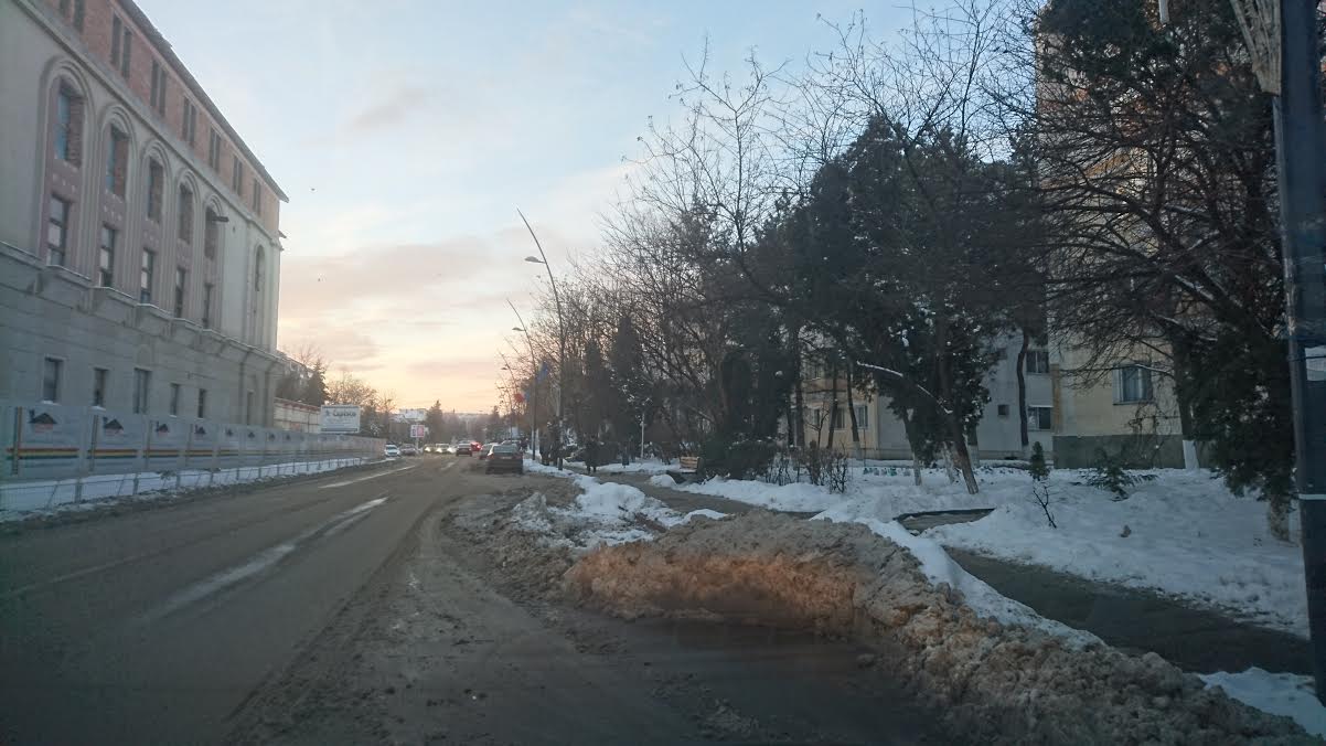 Nici cei de la Urban Serv nu par să se implice în gestionarea zăpezii, limitându-se de a înlătura zăpada de pe trecerea de pietoni. Zăpada ridicată de aici este aruncată în imediata apropiere.