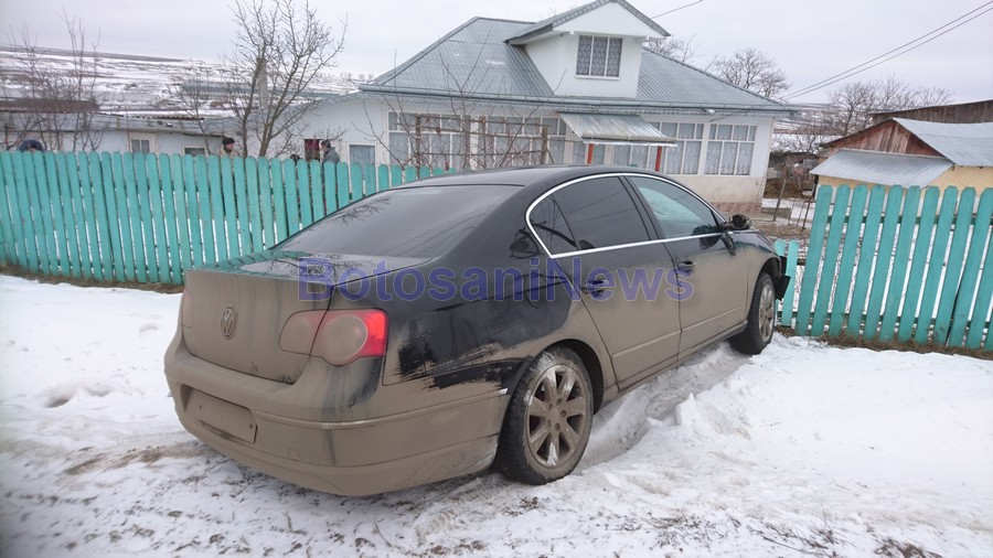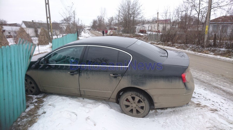 După impact, șoferul, Laurențiu Rusu, s-a panicat, a apăsat puternic pedala de accelerație și s-a izbit într-un gard din partea stângă a drumului.