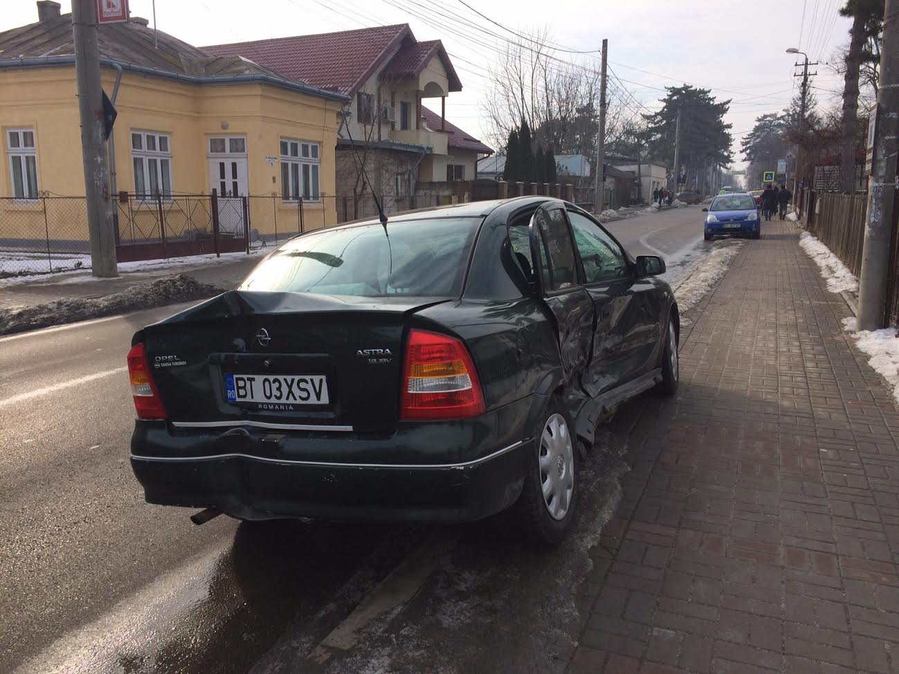 Initial, soferul Opelului a acuzat dureri, insa a refuzat sa fie preluat de ambulanta. Ambele masini au fost puternic avariate.