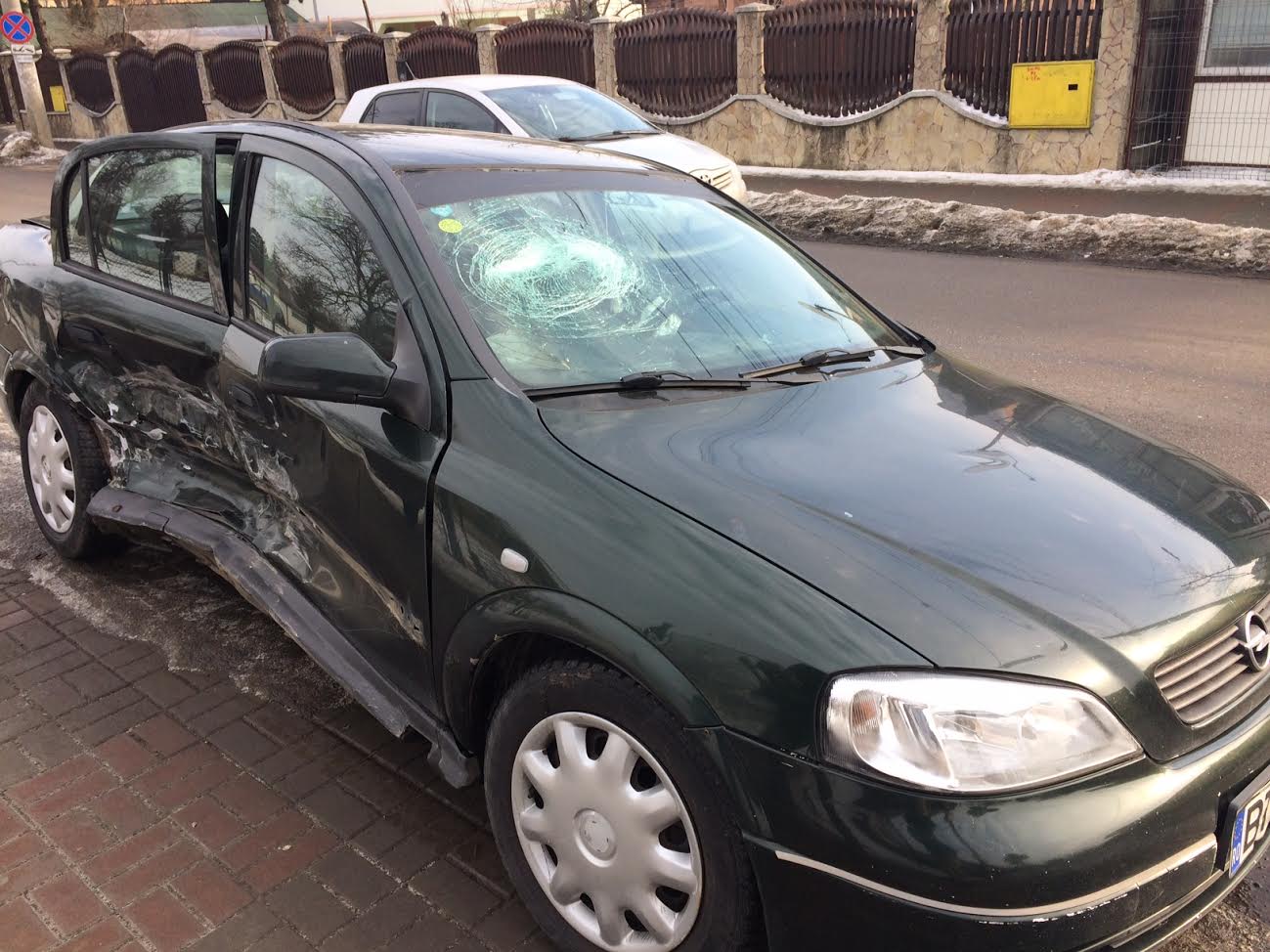 Soferul unui Opel Astra, care rula pe Bulevardul Mihai Eminescu dinspre Lebăda, a patruns in intersectie pe culoarea rosie a semaforului. In acelasi timp, un BMW care circula pe strada Nicolae Iorga dinspre Colegiul AT Laurian, a patruns pe verde lovind in plin Opelul.