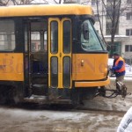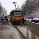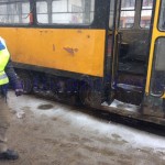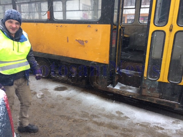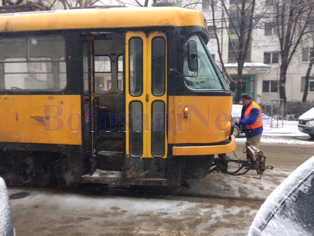FOTO Tramvai sărit de pe şine. Circulaţia blocată