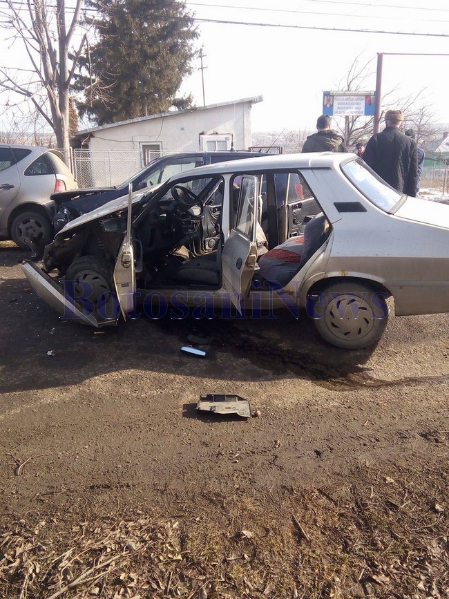 VW Polo se îndrepta spre Botoşani, iar din sensul opus venea autoturismul Dacia a cărui şofer a făcut o manevră la stânga şi nu a acordat prioritate. În urma impactului VW Polo a fost proiectat într-un autoturism Mercedes ce era parcat. Un tânăr, Marian Croitoru de 28 de ani, ce era pasager în VW Polo a suferit mai multe traumatisme fiind transportat cu o ambulanţă la spital. Şoferul vinovat, Marcel Stoian, de 24 de ani, a ajuns şi el la spital.