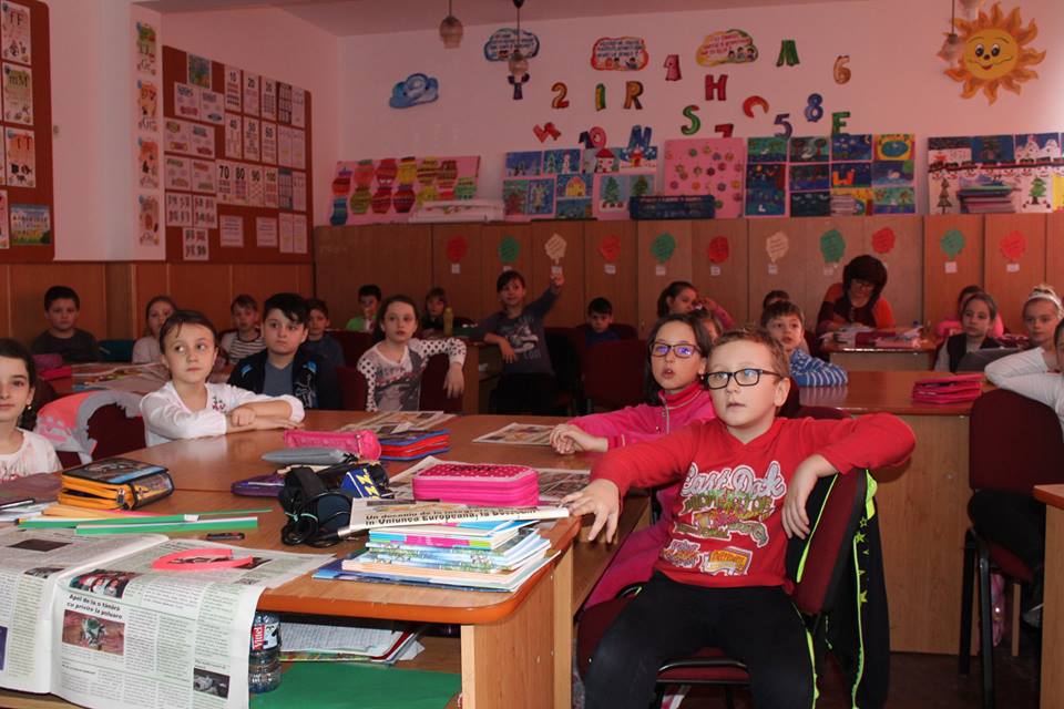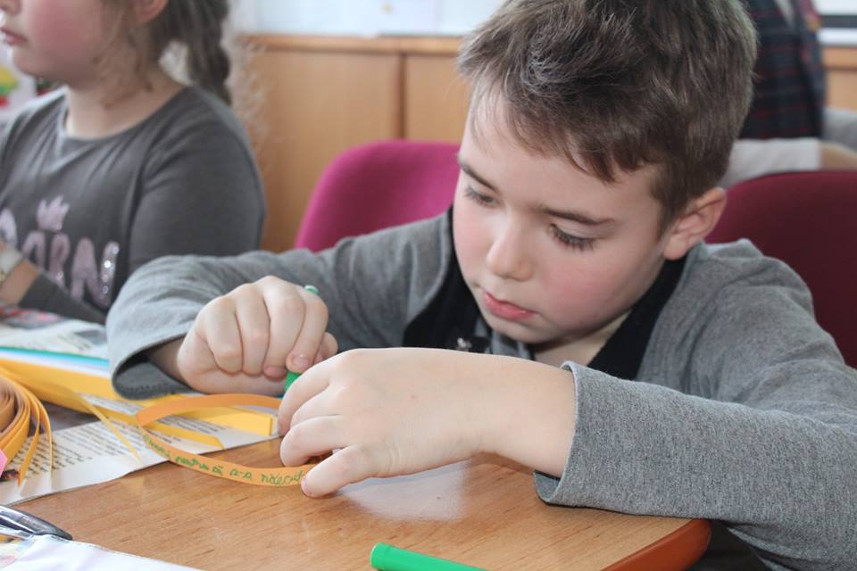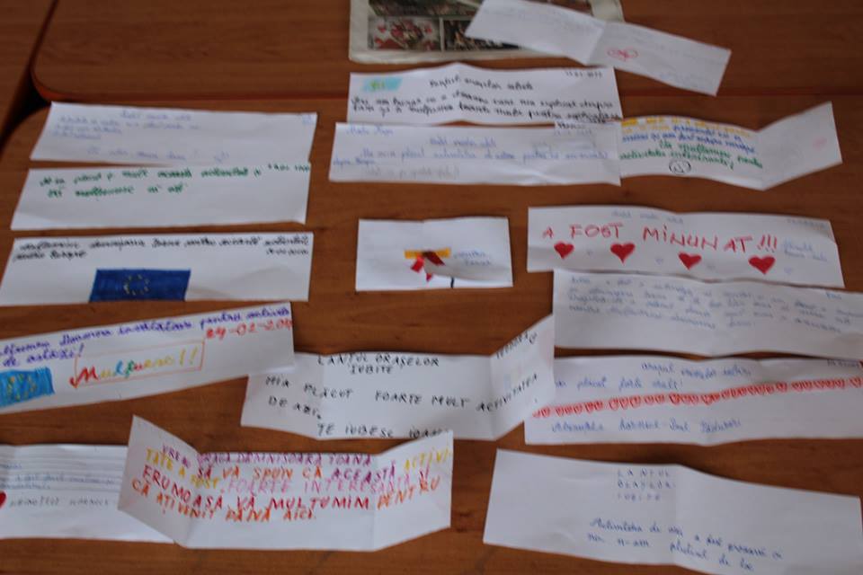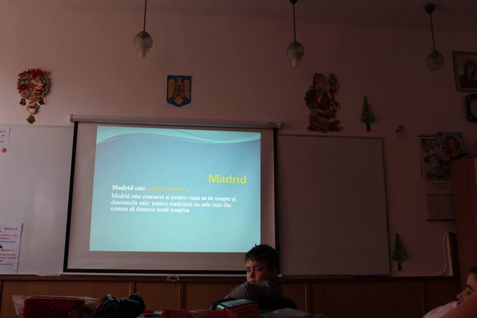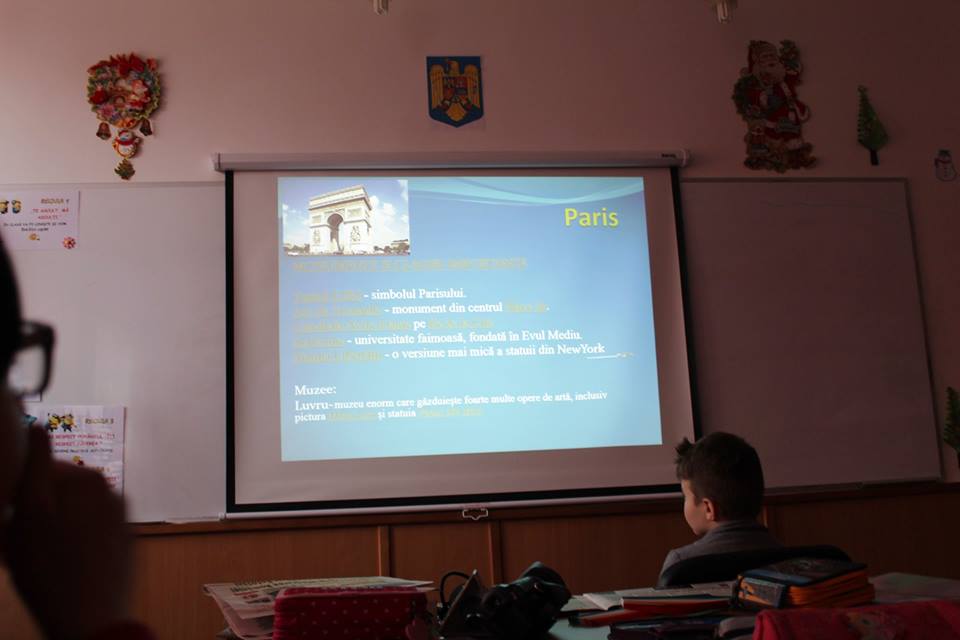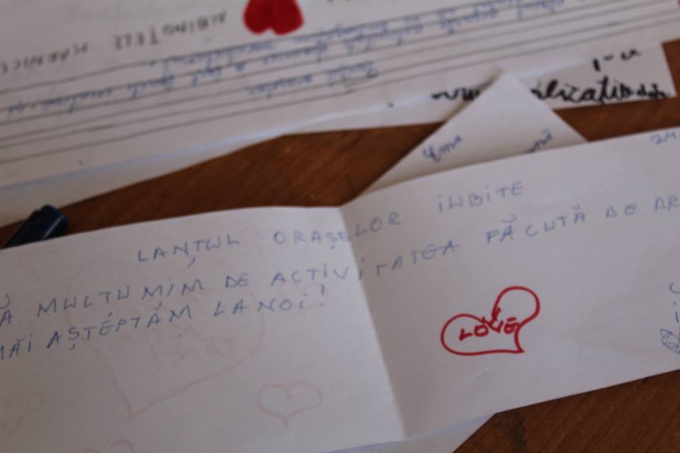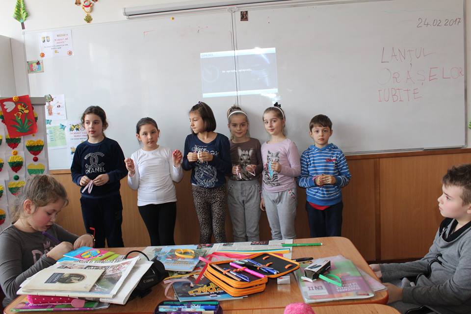 Mai exact, copiii au asistat la o prezentare a principalelor orașe din țările membre ale Uniunii Europene, după care s-au împărțit pe echipe și au confecționat inimi colorate pe care au scris numele unor orașe europene