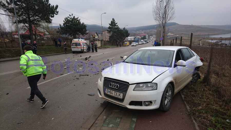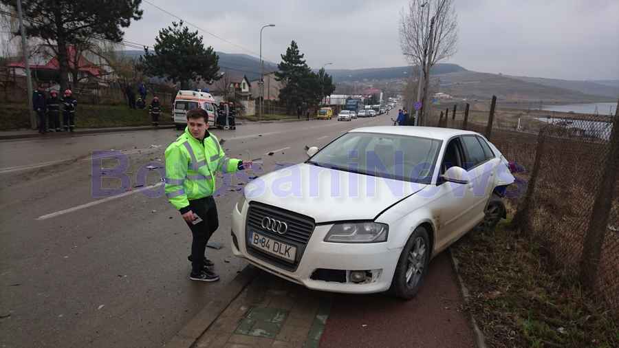 Un grav accident de circulație a avut loc, miercuri, la Lebăda. O ambulanță și un autoturism Audi s-au ciocnit violent.