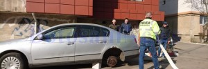 FOTO Un botoşănean s-a trezit fără roţile de la maşină, după ce a lăsat-o în parcare