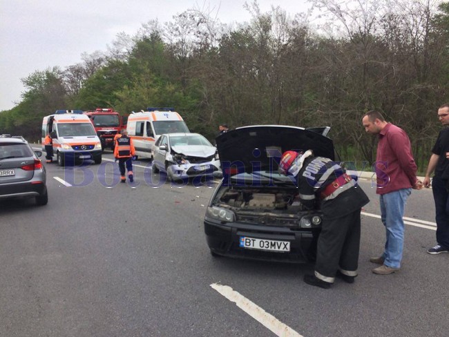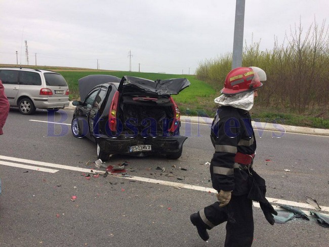 Un grav accident de circulaţie a avut loc, sâmbătă în jurul amiezii, pe drumul Botoşani-Suceava, în zona Baisa. Un autoturism Fiat Punto a fost izbit din spate de un autoturism Ford şi patru persoane au ajuns la spital. Cei doi şoferi au avut variante diferite cu privire la producerea evenimentului.