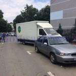 El conducea o camionetă a firmei Ovisim pe strada Octav Băncilă, dinspre Armoniei către Octav Onicescu. La un moment dat, camioneta lovește trei autturisme, un Hyundai,  Dacia Duster și un Daewoo Cielo.