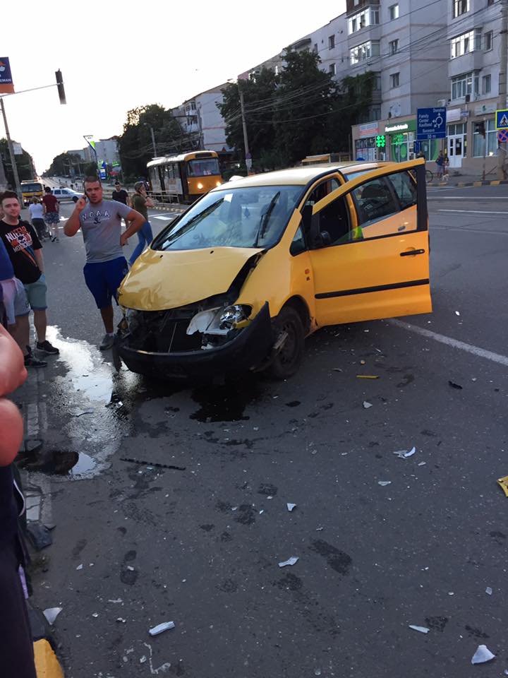 Două autoturisme s-au ciocnit, după ce unul dintre șoferi nu a acordat prioritate la intersecția dintre Calea Națională cu strada Gării.