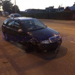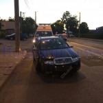 În zona magazinului Praktiker un alt autoturism i-a tăiat calea şi şoferul a frânat trăgând în acelaşi timp dreapta de volan şi ajungând într-un stâlp de iluminat. În urma impactului şoferul şi soţia sa, Lavinia, au suferit mai multe traumatisme fiind preluaţi de ambulanţe şi transportaţi la spital.