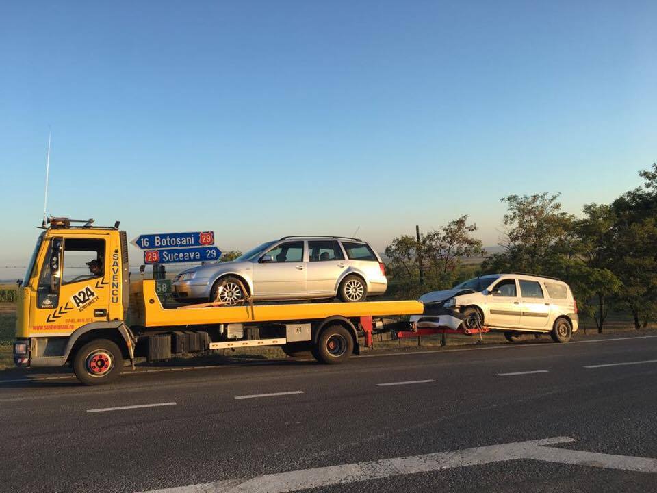 Evenimentul a avut loc în zona localităţii Vlădeni când şoferul unui VW Bora ce se îndrepta dinspre Botoşani spre Suceava a vrut să facă stânga, însă a fost acroşat de un autoturism Dacia Logan ce circula din spate.