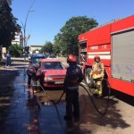 Poliţiştii locali au alertat, marţi după amiază, pompierii pentru a interveni la înlăturarea carburantului scurs de la o maşină parcată defectă.