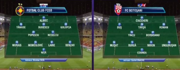 FCSB: Niță – R. Benzar, Larie, Momcilovici, J. Morais – Nedelcu, Ov. Popescu – Fl. Tănase, Budescu, Golofca – Alibec