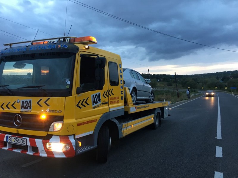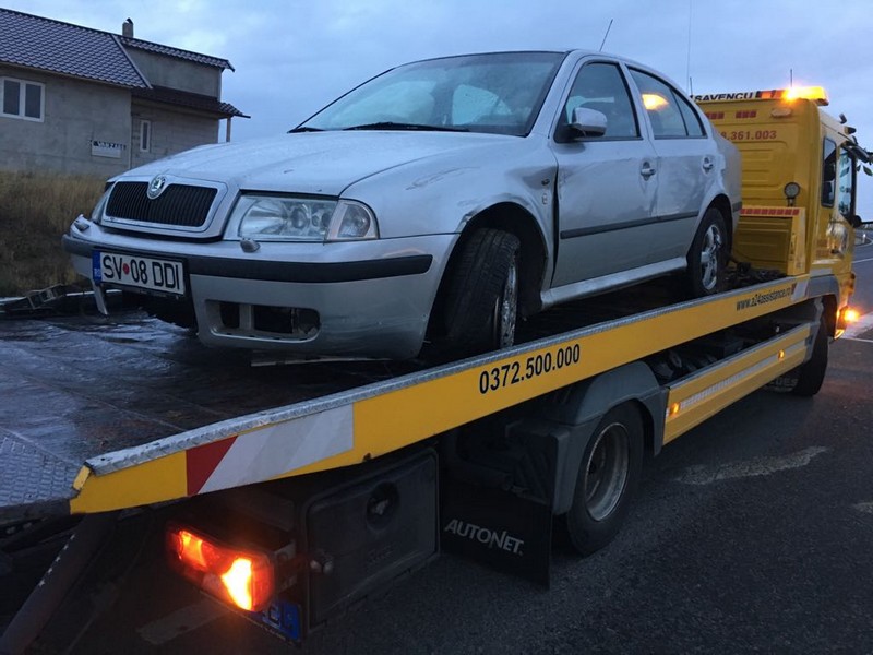 Nu au fost victime, însă autoturismul Skoda Octavia a fost avariat serios.