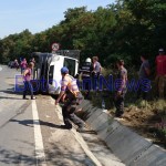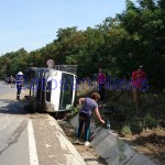 Șoferul de 54 de ani nu a mai putut controla mașina încărcată cu balast, astfel încât aceasta a ieșit de pe carosabil. După ce a lovit cu botul un mal de pământ, autoutilitarea s-a dat peste cap.