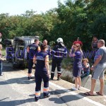 Șoferul și soția sa, aflată în dreapta, au fost ajutați de niște muncitori să iasă din mașină. Cei doi acuzau dureri ușoare și au primit îngrijiri medicale de la un echipaj de ambulanță sosit la fața locului.