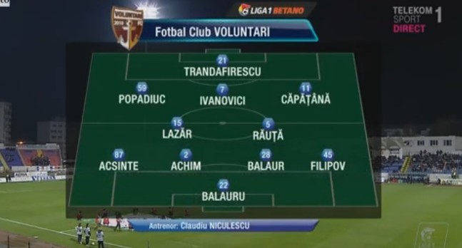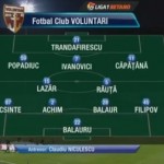 FC Voluntari: Balauru-Filipov, Balaur, Achim, Acsinte, Răuţă, Lazăr, Căpăţână, Ivanovici, Popadiuc, Trandafirescu. Antr. Claudiu Niculescu