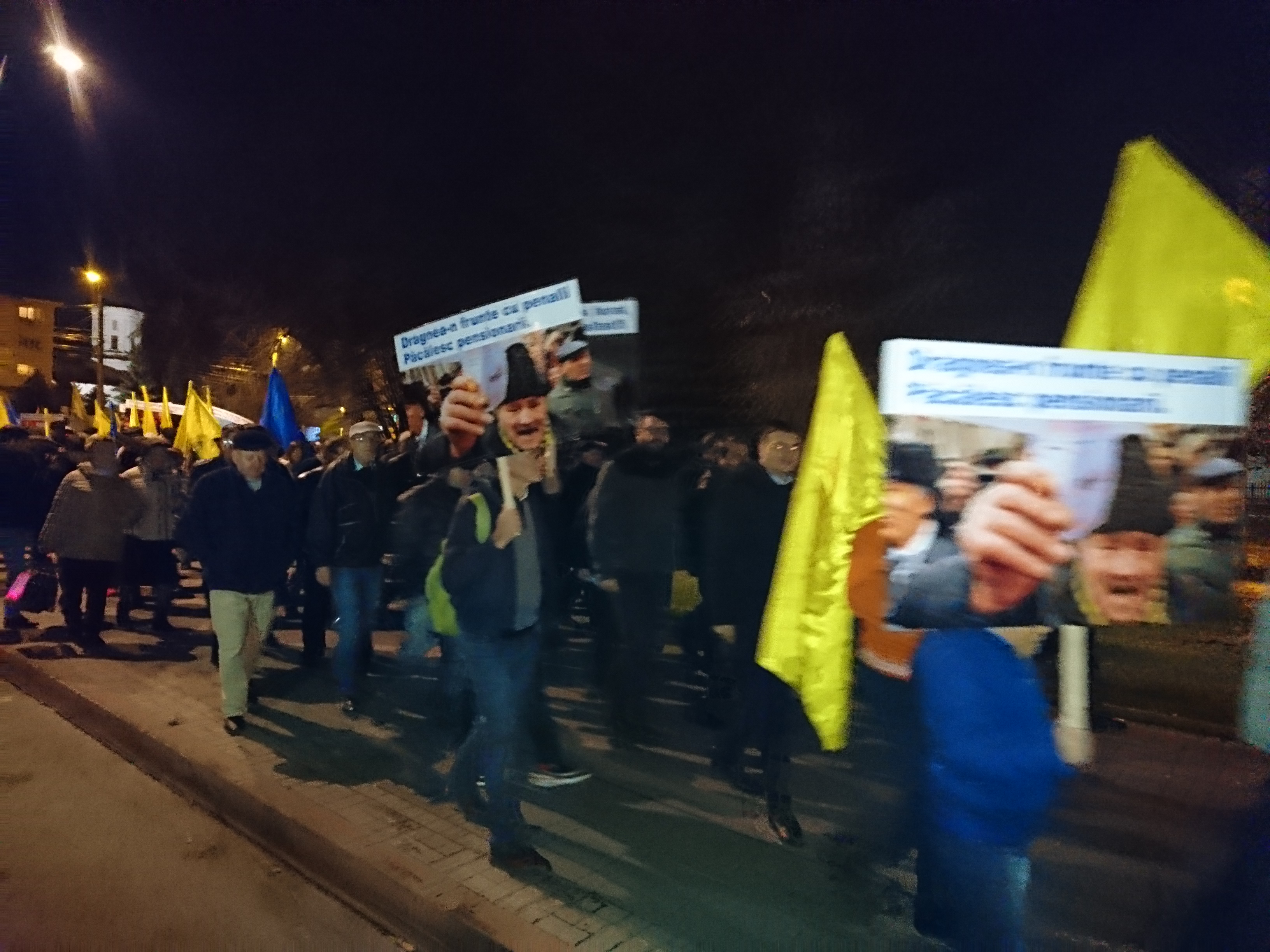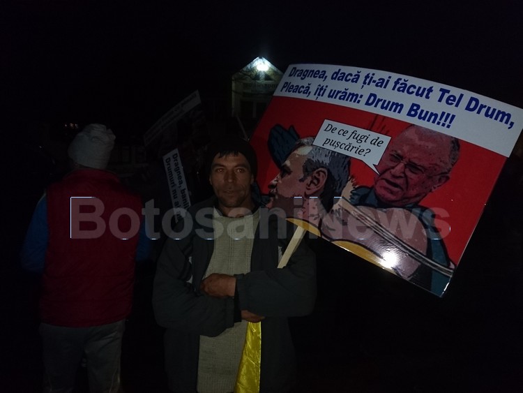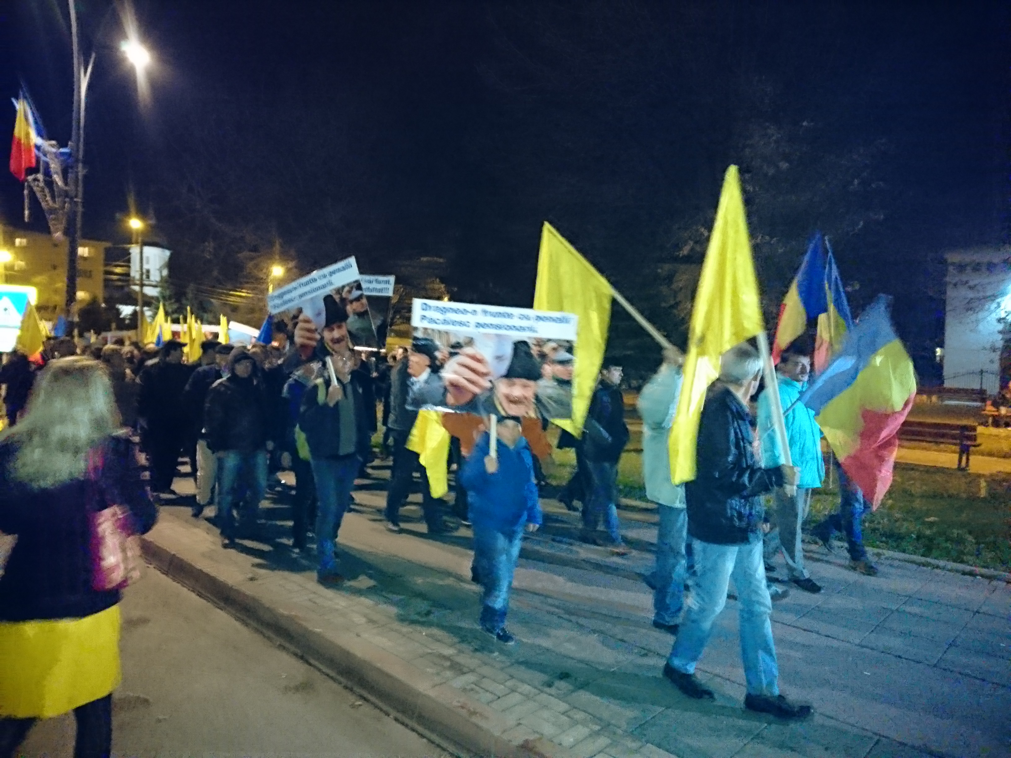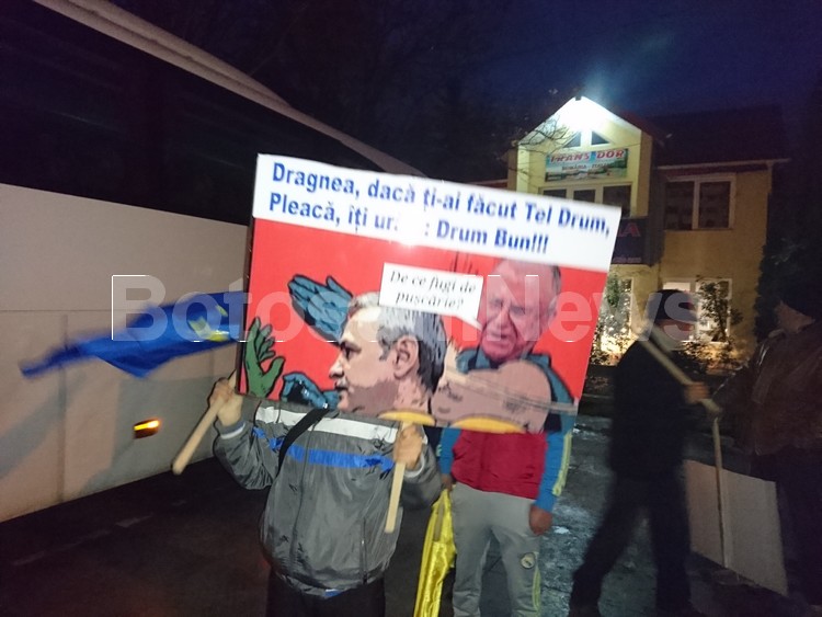 Oamenii au purtat pacarte cu mesajele ”PSD-ciuma roșie!”, ”Dragnea, dacă ți-ai făcut TelDrum/Pleacă, îți urăm: Drum bun!” ”Dragnea: De ce fugi de pușcărie?” ”Dragnea-n frunte cu penalii/Păcălesc pensionarii” ”Dragnea, banii i-ai luat/Drumuri nu ai asfaltat”.