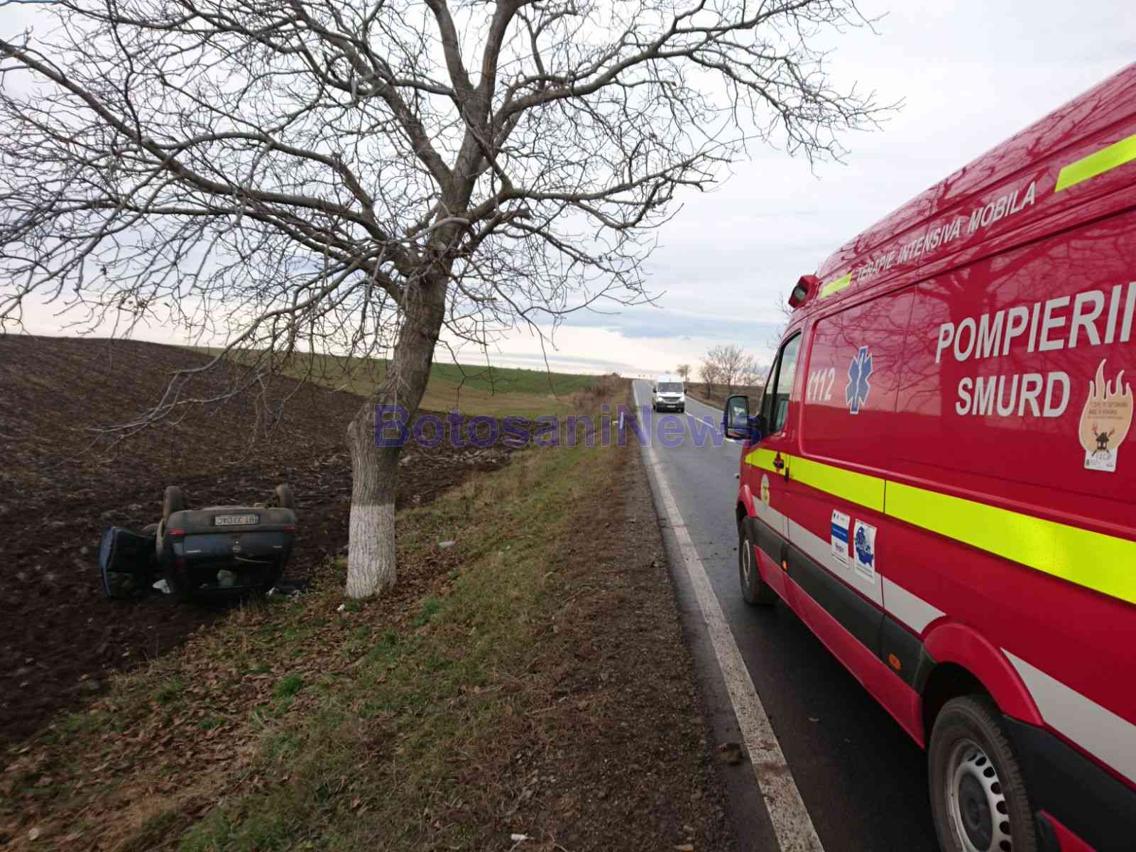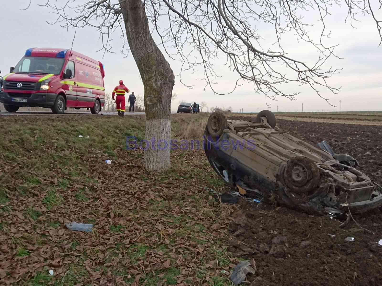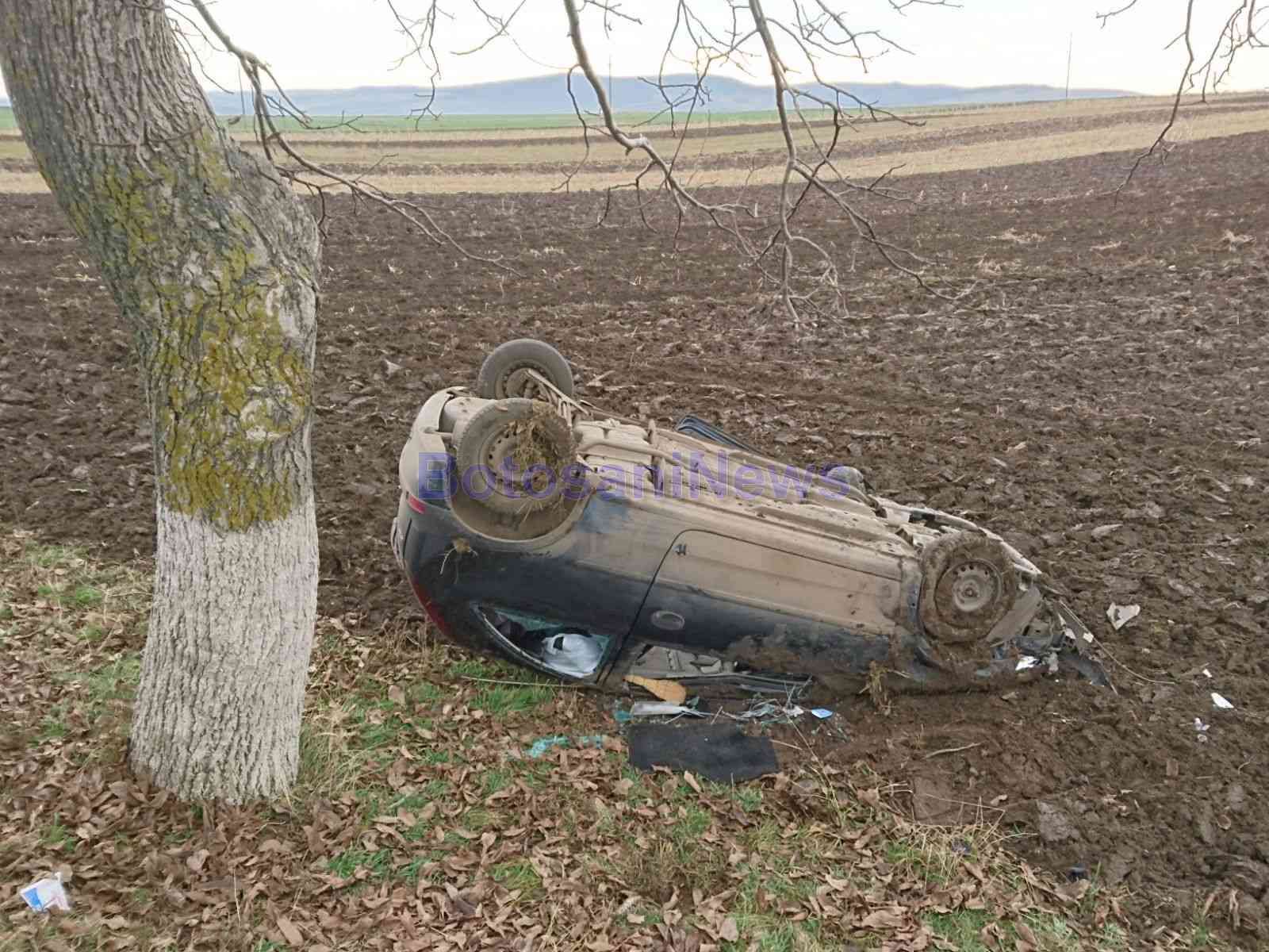 Un grav accident rutier soldat cu rănirea a doi bărbaţi a avut loc, marți, pe drumul care leagă Botoșaniul de Dorohoi. Un autoturism s-a răsturnat pe un câmp între localitățile Brăești și Leorda, după ce a fost acroşat de o altă maşină.
