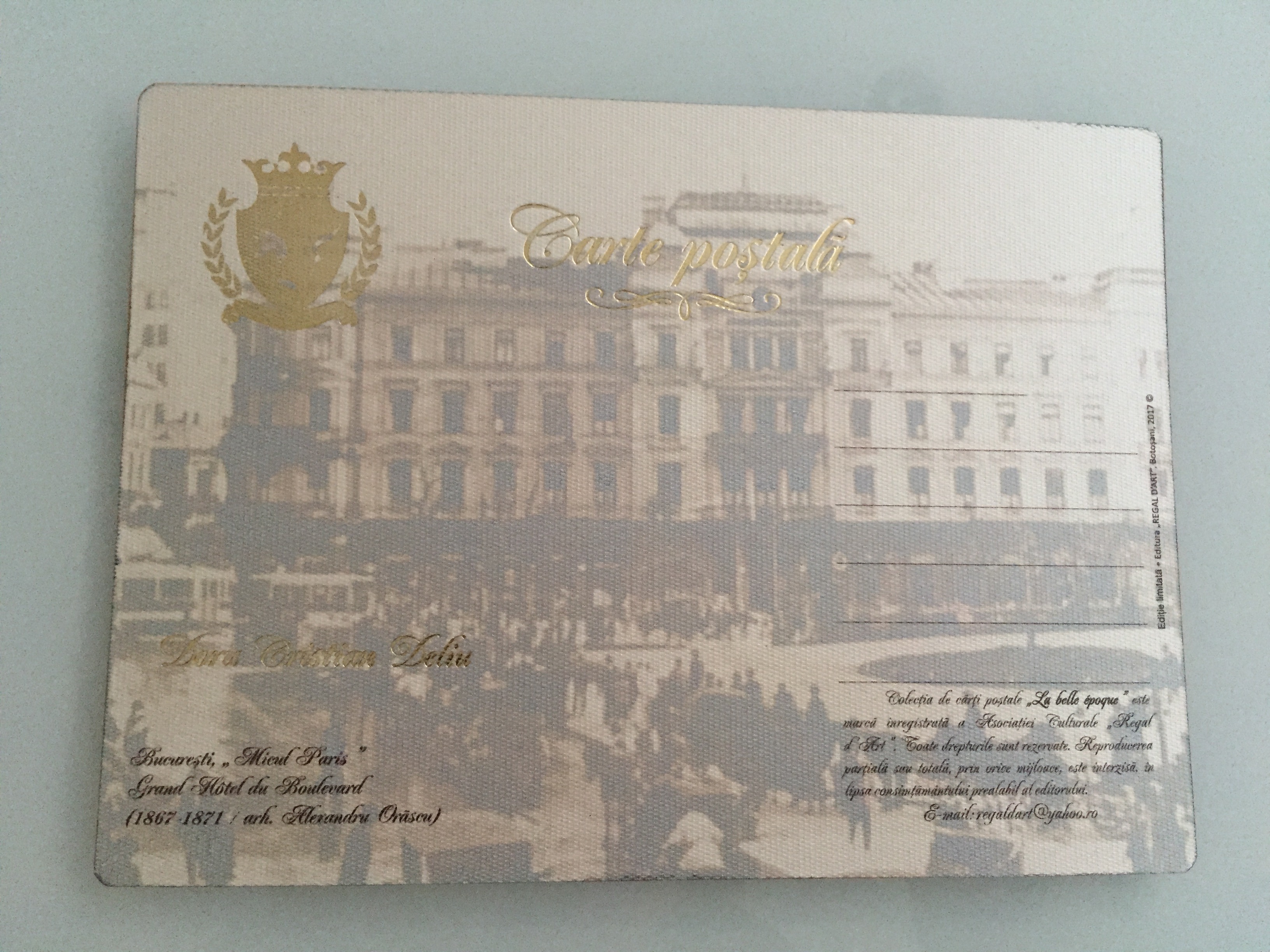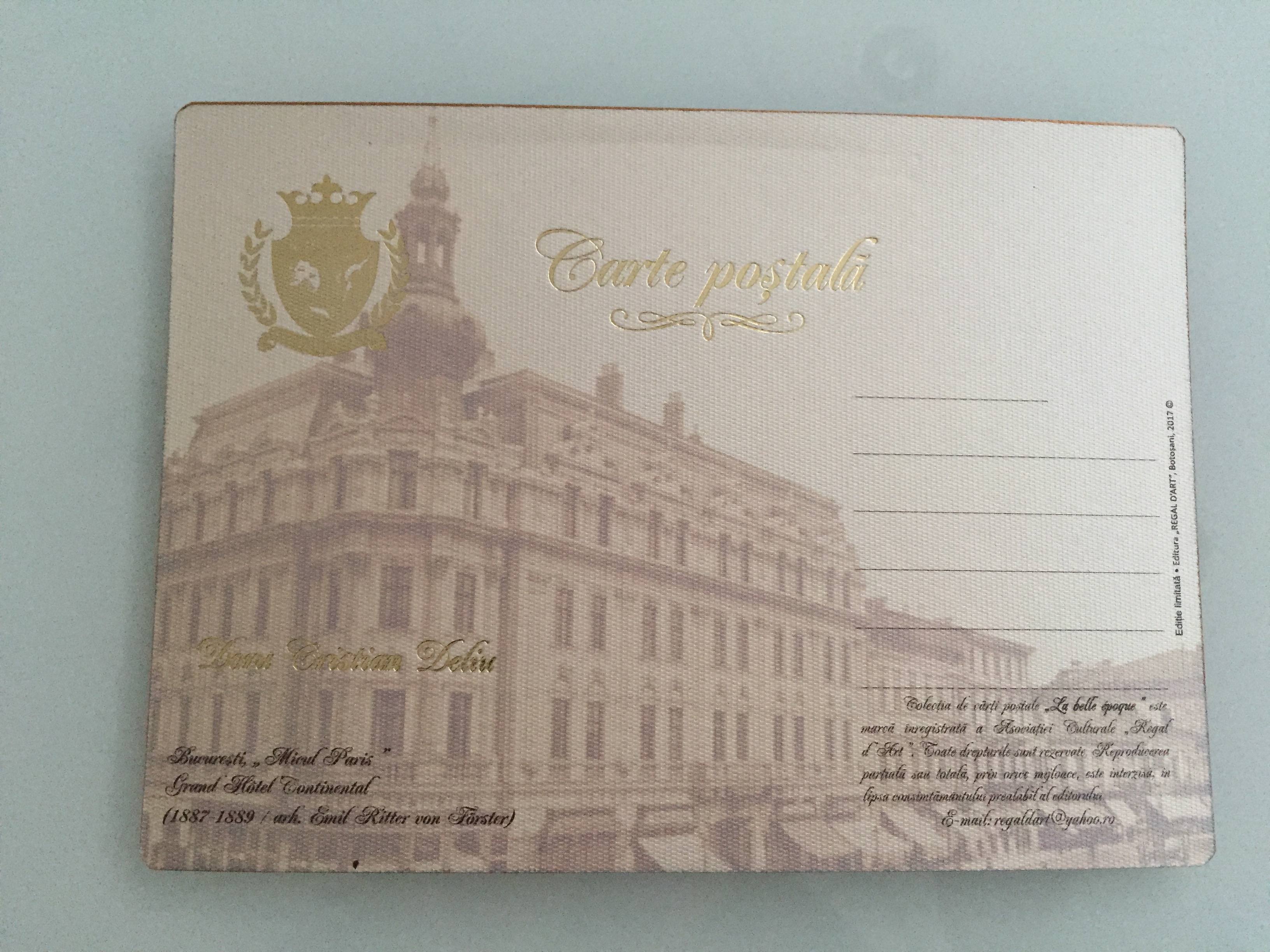 Prin colecţia de cărţi poştale ilustrate „La belle époque”, realizată de Editura „Regal d'Art” Botoşani şi tipărită în condiții grafice de excepție la Tipografia „Pim” din Iaşi (cu sprijinul necondiționat al managerului general, distinsa doamnă Maria Petrariu), Asociația Culturală „Regal d'Art” îşi demonstrează, încă o dată, înaltul profesionalism şi competenţa în promovarea valorilor culturale româneşti în lume, demonstrând că, în orice colţ de ţară te-ai afla, slujirea interesului naţional, dorinţa de mai bine şi generozitatea pot fi puse în practică, la fel de eficient, ca în orice mare centru cultural.