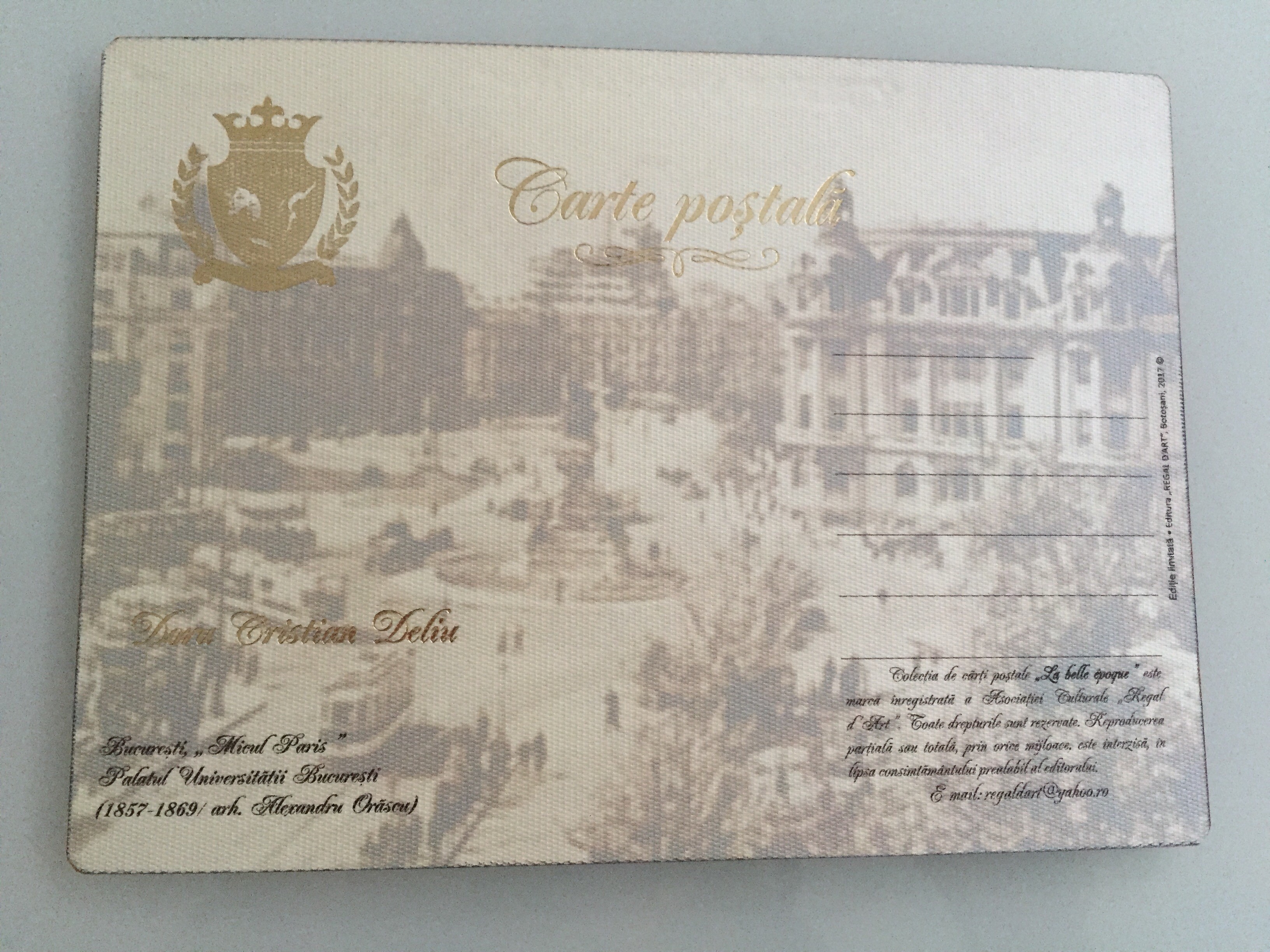 La sfârșitul acestui an Asociaţia Culturală „REGAL D'ART” ne încântă cu un nou proiect, reprezentând editarea, în ediţie de lux şi în serie limitată, a unei colecţii de 20 de cărţi poştale ilustrate, cu imagini din Bucureştii de altădată, după tablourile realizate în acest scop, de apreciatul pictor Doru Cristian Deliu.