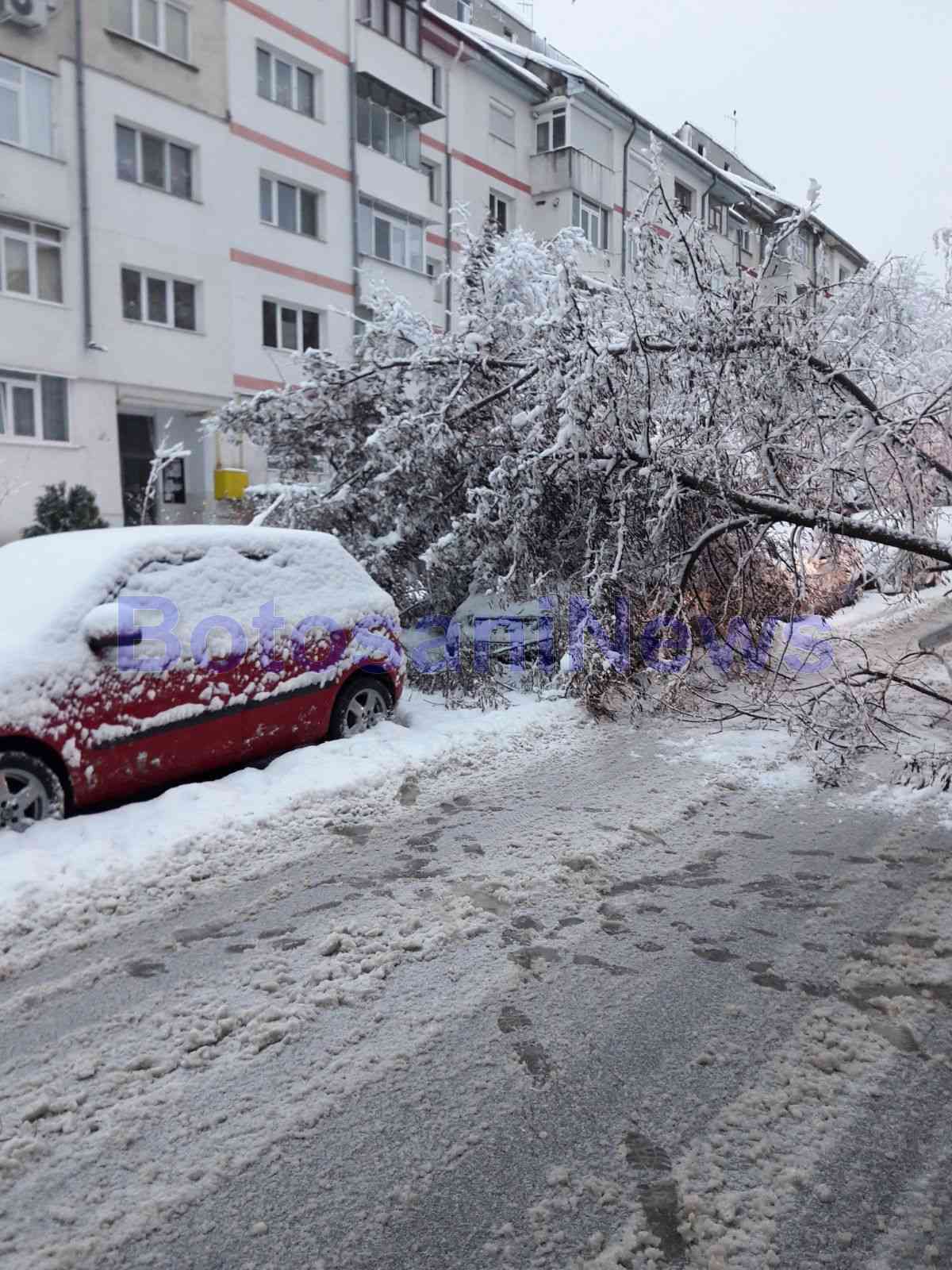 Mai mulți copaci au căzut, vineri dimineață, din cauza zăpezii, determinând blocarea temporară a unor străzi și alei din municipiul Botoșani.