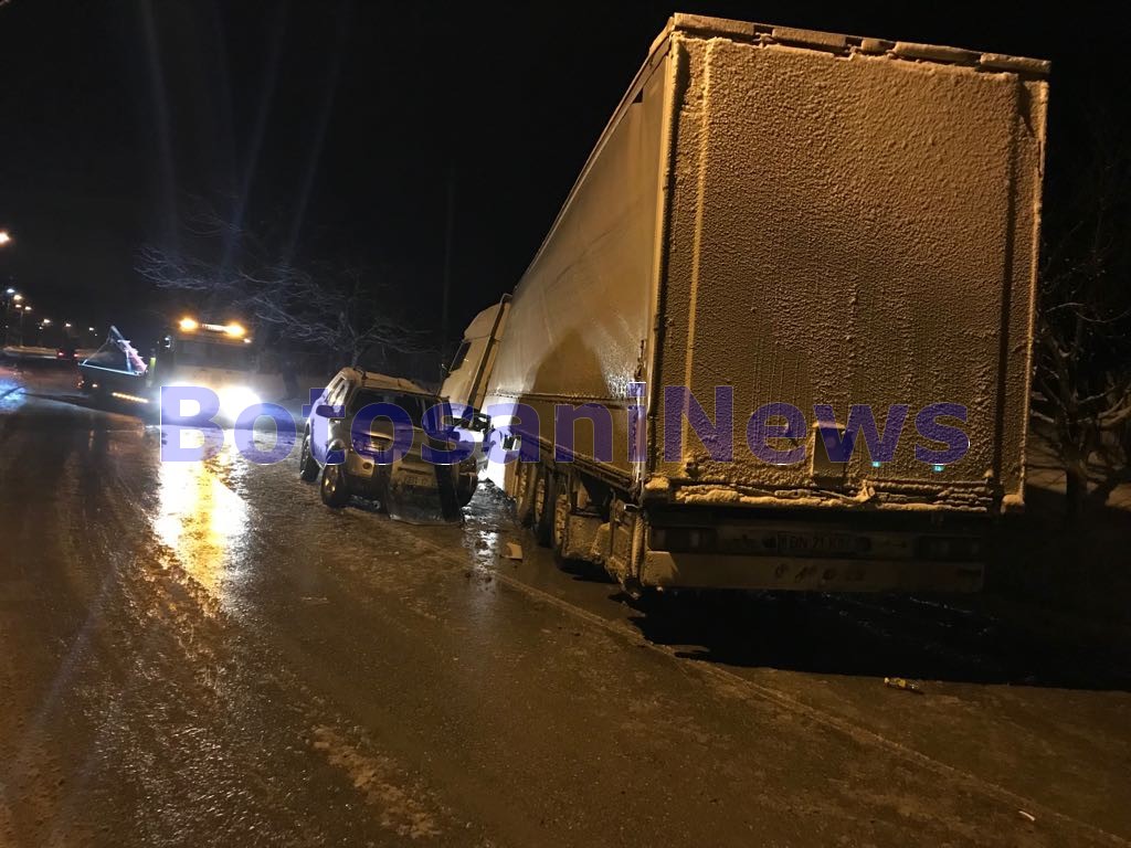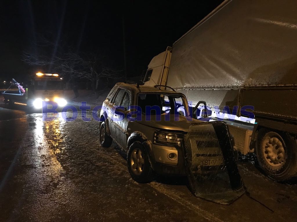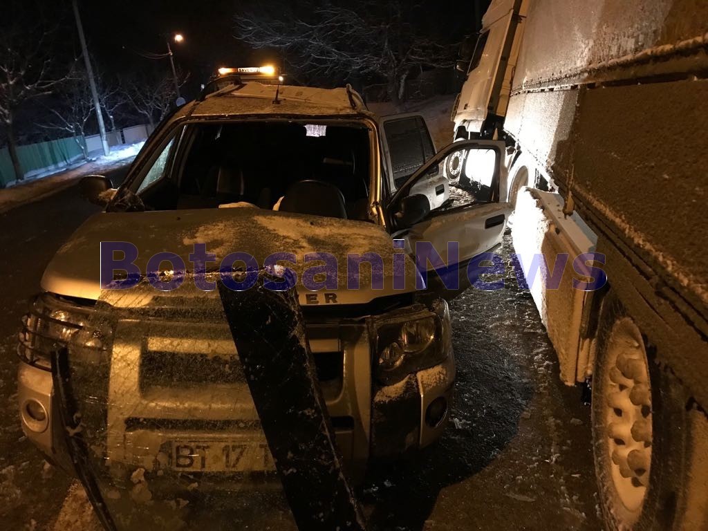 La intrarea în localitatea Victoria, maşina de teren a intrat în depăşirea unui autocamion înmatriculat în Bistriţa, însă, în acel moment, pe fondul carosabilului acoperit cu zăpadă, camionul a derapat, intrând în coliziune cu aceasta.