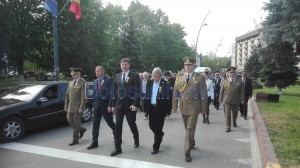Programul închinat veteranilor a inclus depunerea de coroane şi jerbe de flori la monumentul situat la intersecţia Căii Naţionale cu strada Cuza Vodă și defilarea detaşamentului de onoare.