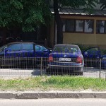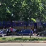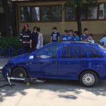 biciclist și în două mașini parcate pe dreapta străzii Împărat Traian.